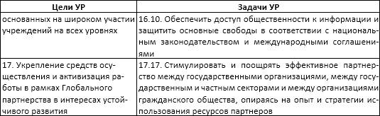 В таблице 1.7 приведены цели и задачи ЦУР, на которые оказывает непосредственное влияние создание и развитие э-правительств и которые использовались для определения индекса онлайн услуг OSI и при обследовании и оценке экспертами качества и доступности открытых государственных данных на общегосударственных порталах и ведомственных сайтах.