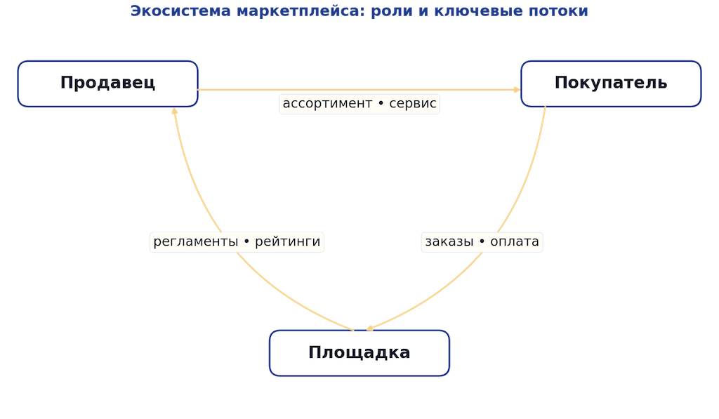 Связка простая: площадка задаёт правила, продавец их исполняет, покупатель подтверждает выбор – алгоритм фиксирует результат.