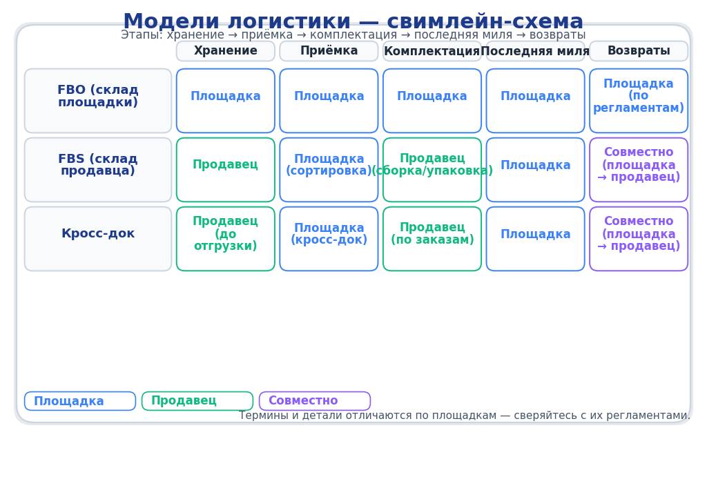 Режимы хранения и отгрузки различаются скоростью и себестоимостью: склад площадки, склад продавца, кросс-док. От выбранной модели зависят обещанные сроки, стабильность «последней мили», правила обратной логистики и то, как система прогнозирует конверсию по региону и товарной группе.