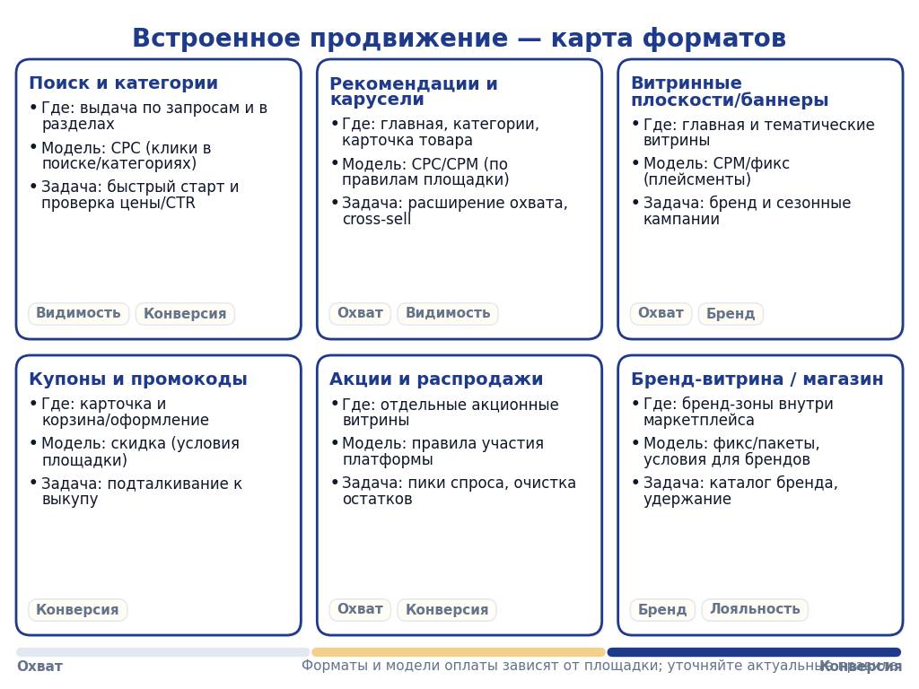 – Источники показов: внутренняя выдача по запросам и категориям, рекомендации, витрины и «похожие».