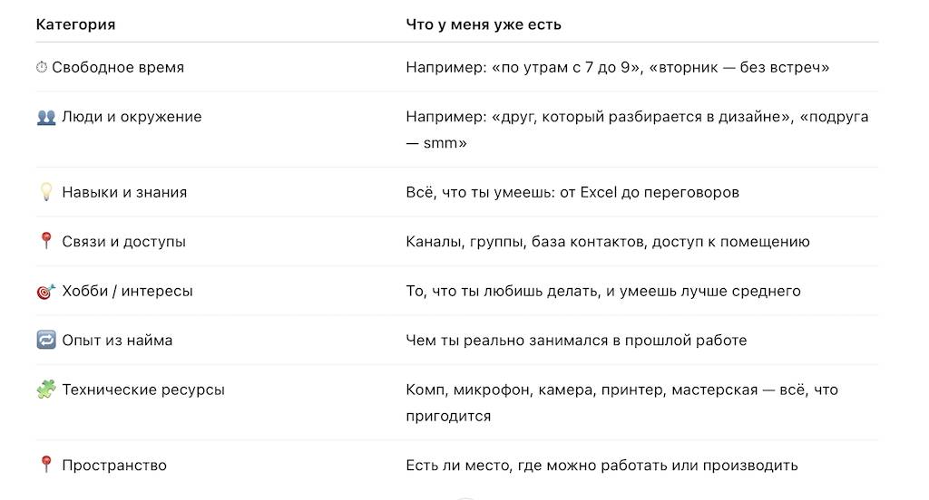 Когда таблица заполнена, выдели маркером или жирным 3–4 самых сильных пункта. Это твоя база старта. Именно на ней будем строить первые шаги.