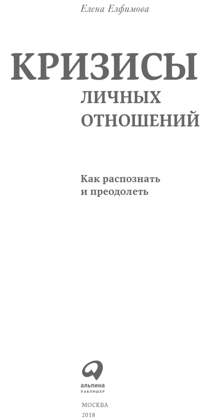 Кризисы личных отношений: Как распознать и преодолеть / Елена Елфимова. – М.: Альпина Паблишер, 2018.