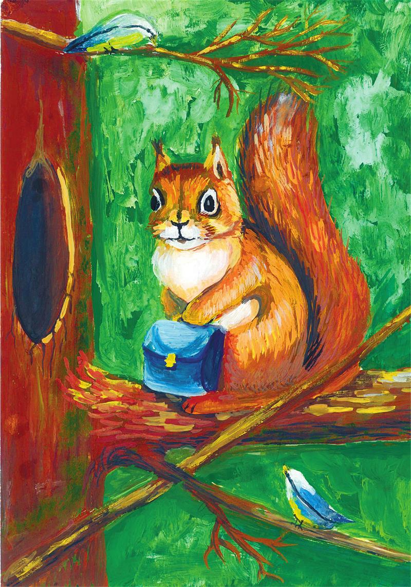 Белка не сидит на месте,Быть в пути ей интересней.Здесь – сегодня, завтра – там,Подарю ей чемодан.Путешествуя по лесу,Строит из себя принцессу.Напевает: «Улю-лю,Песню я свою пою.Чики-рики, чики-рины,Ягоды люблю рябины.А ещё люблю орешкиИ весёлые потешки.Дом себе не строю я,Ведь в лесу полно жилья.В дом чужой я заскочуИ его заполучу.Прыгать я люблю по веткам.Хвастаюсь хвостом соседкам.В дуплах я грибы сушу,Съесть зимой их захочу.Спрячу на зиму орехи —В этом есть мои успехи.Новый дом чтобы найти,Через день буду в пути».Ели, сосны и дубы —Все для белки хороши.Занимать чужие гнёзда —Делать белке очень просто.