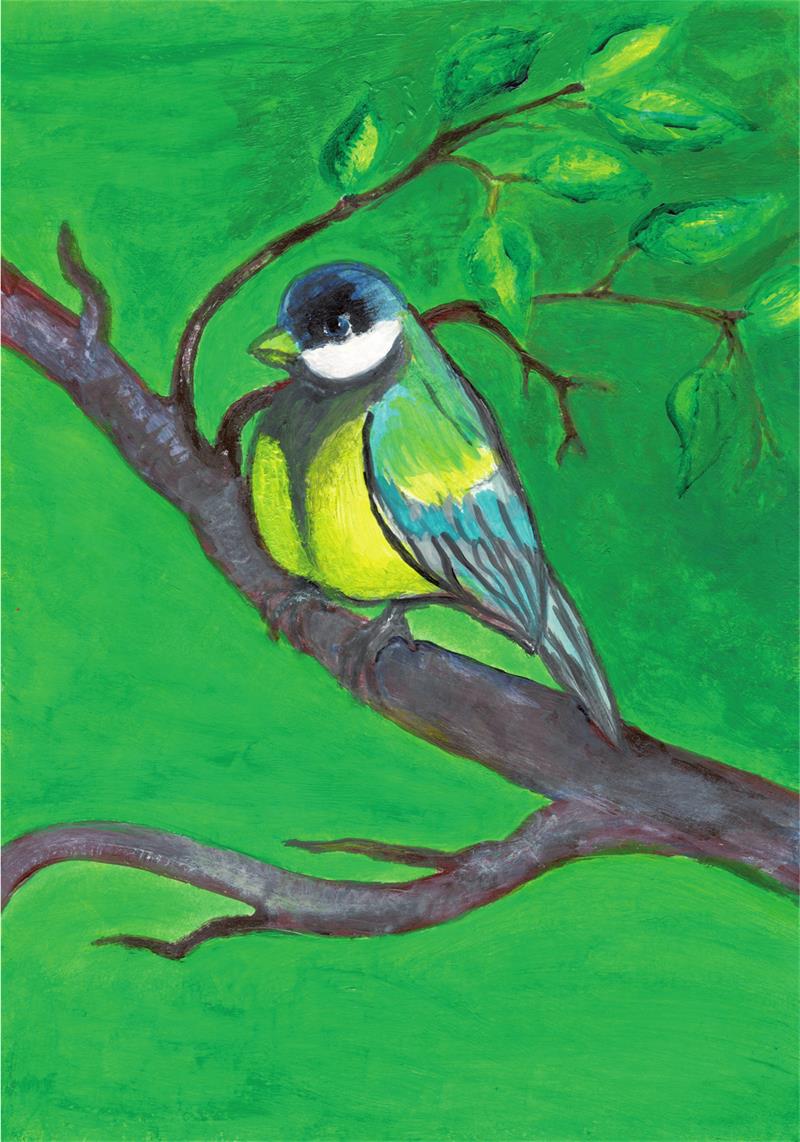 Как увидишь неба синьДа услышишь звук «зинь-зинь» —Значит, маленькая птичка,Под названием синичка,Где-то рядышком живёт,Мир природы бережёт.Желтобокая певичка —Воробью в семье сестричка.Классно выглядит красотка,Разделяет грудь бороздка.Жёлтый цвет, как у лимона,У её комбинезона.Чёрный чепчик, чёрный клюв,Ест она стрекоз и мух,Избавляет от противныхКомаров, столь агрессивных.Зимой сало любит кушать,Нам её ни с кем не спутать.Щёки белые, как вата,Доброте синичка рада.