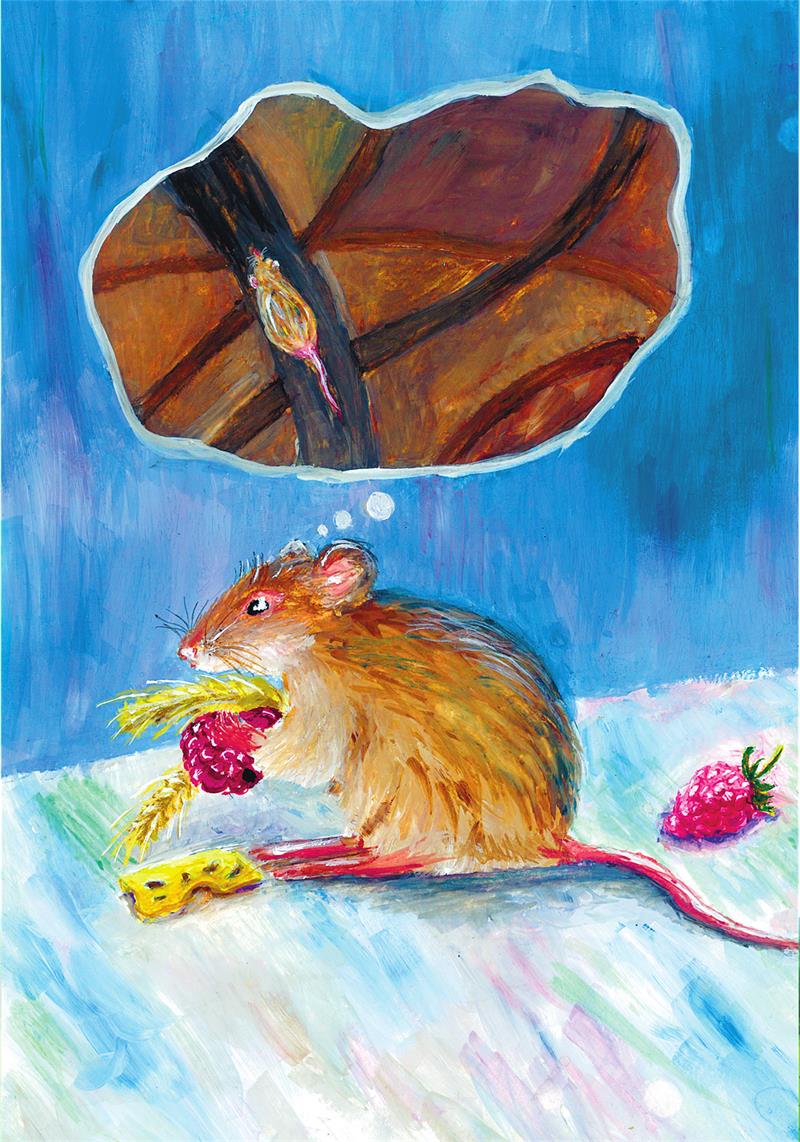 Раздаётся писк под полом —Это очень всем знакомо:Прибежала, значит, мышка,Нам соседку громко слышно.Ей живётся в доме классно,Прибирается в нём часто.Видно, та ещё чистюля,Не смотри, что крохотуля.Все остатки от едыЗаберёт в свои ходы.Любит фрукты, сыр, бесспорно,И судьбой своей довольна.Прячет зёрнышки в котомках,Жить приходится в потёмках.Можешь ты себе представить:У неё есть ум и память?Выход в норке не один,Она любит лабиринт.Человеку став соседом,Научилась быть стратегом.