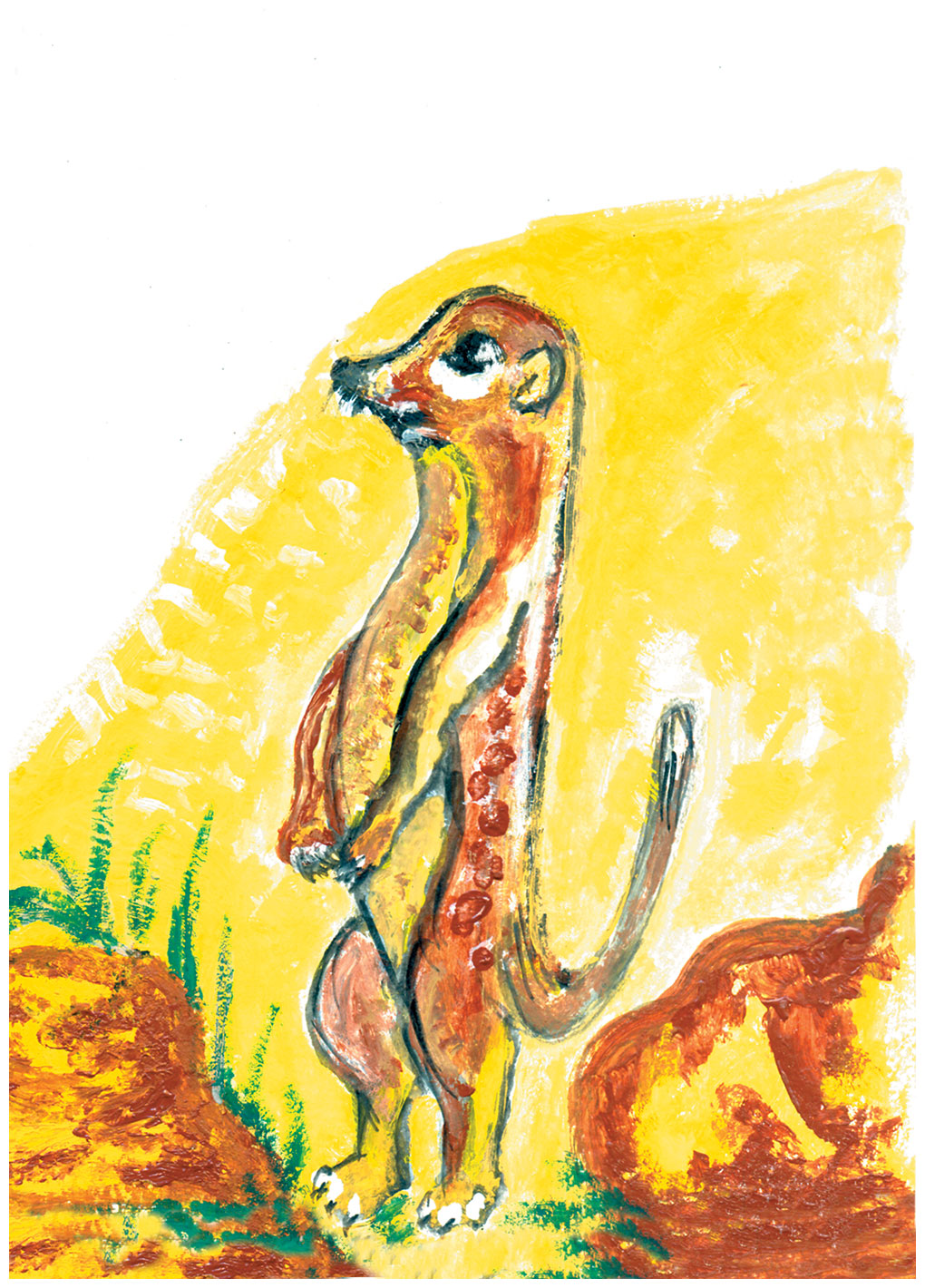 Кто такие сурикаты?Может быть, они солдаты?Сурикаты в позе «стойка»Держатся на лапках стойко.Крепкие у них тела,Зоркий взгляд, как у орла.«Часовые» на площадкеОтвечают за порядки.Вместе с солнцем встают рано.Вертикальная асанаУдаётся им легко.В позе все до одного.На земле Великой жаждыНачеку быть очень важно.Населенье их не густо,И в родне они с мангустом.Охраняет деток мама,Она главная у клана.Жизнь отдаст за малышей,Безопасность их важней.