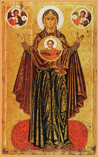 Богоматерь Великая Панагия (Оранта). Первая треть XIII в. Ярославль. Государственная Третьяковская галерея, Москва