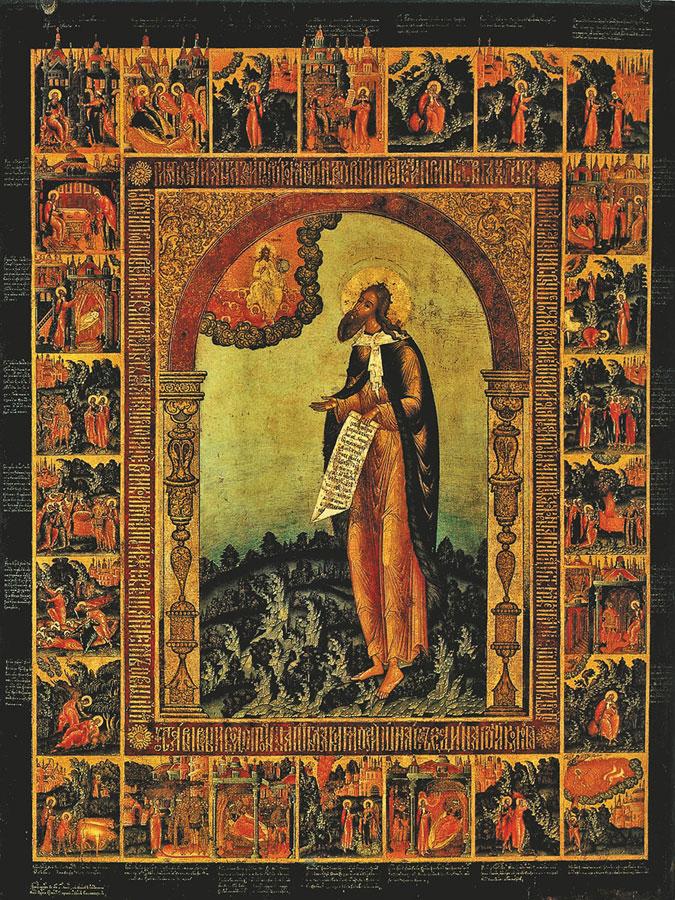 Большая часть жизни царского изографа Семена Спиридонова Холмогорца (художник был родом из Холмогор) прошла в Ярославле, втором по величине города Руси XVII века, из храмов которого происходят все сохранившиеся иконы мастера. Мир представленный в его работах поражает своей искусной красотой. В этой иконе виртуозность техники «мелочного» письма продолжает традиции «строгановской школы». Предстоящий перед Богом-Саваофом пророк со свитком в руке дан в трехчетвертном повороте; средник иконы обрамляет золотая узорчатая арка на тонких фигурных колонках – излюбленный декоративный прием мастера. В холмистом пейзаже угадываются типично русские черты.