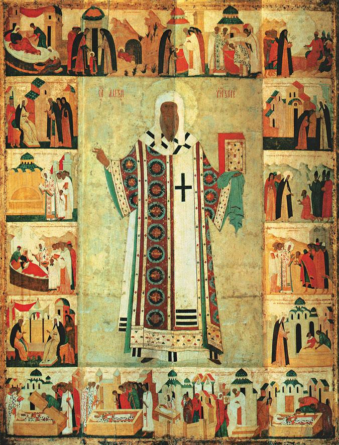 Митрополит Алексий (1292/1298–1378) был фактическим правителем Московской Руси в годы малолетства великого князя Дмитрия Донского. Своим духовным авторитетом он способствовал прекращению усобицы между удельными князьями и укреплению государства, что в итоге привело к победе русского войска на Куликовом поле в 1380 году.