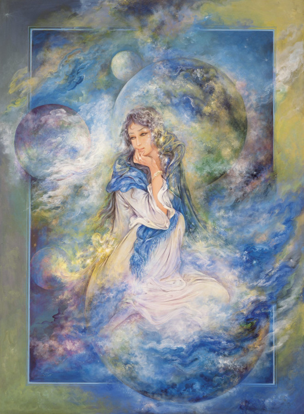– Какое радостное это слово «алёра», – подумала она и ещё раз произнесла его вслух. В тот же миг туманный занавес взлетел вверх, открывая перед ней удивительную картину. Зеркальный купол, усыпанный звёздами, нависал над огромным пространством, в котором стояли, лежали и висели в воздухе зеркала разных форм и размеров, отражая бледный, задумчивый лик Луны – Селены.