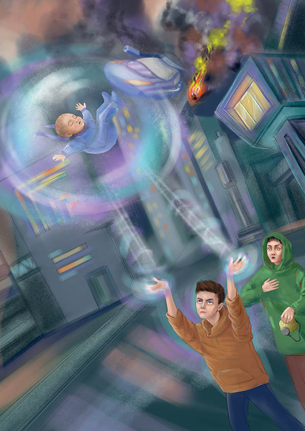 Вдруг сверху раздался громкий гул. Витя поднял голову и увидел аэромобиль, который, похоже, вышел из строя и потерял управление. Он метался зигзагами над школьной территорией, выполняя странные маневры, переворачиваясь, делая мертвые петли. Вдруг аппарат застыл в воздухе как вкопанный, а из его открытого бокового окна выпал малыш, которому на вид не было и двух лет. Высота была приличная, и Витя с ужасом подумал, что ребенку конец. Но, пролетев несколько метров, младенец замер в воздухе так же, как и аэромобиль над ним. Витя ошарашенно огляделся по сторонам и увидел, что в школьном дворе не было никого, кроме него и этого странного Эда. Стёкла в окнах здания после уменьшения озонового слоя были заменены на непрозрачные фильтр-щиты, которые помогали сдерживать смертоносные солнечные лучи. Поэтому эту страшную и завораживающую картину из школы тоже никто не видел. Витя снова перевел взгляд на Эда и увидел, что тот поднял руки и будто управляет выпавшим ребенком, плавно опуская его на землю. Когда ребенок оказался в безопасности, а поврежденный аэромобиль совершил жесткую посадку на пустыре, где когда-то было футбольное поле, Витя, будто сбросив с себя оцепенение, побежал к Эду.