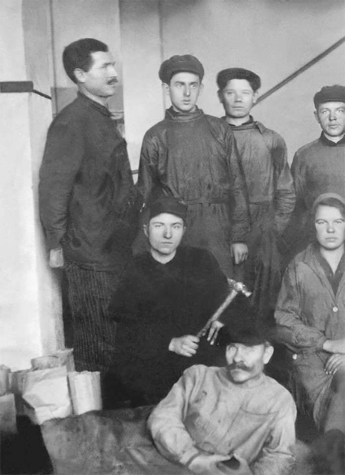 Кочегарка, конец 20-х ХХ века. Исаев стоит (первый слева)