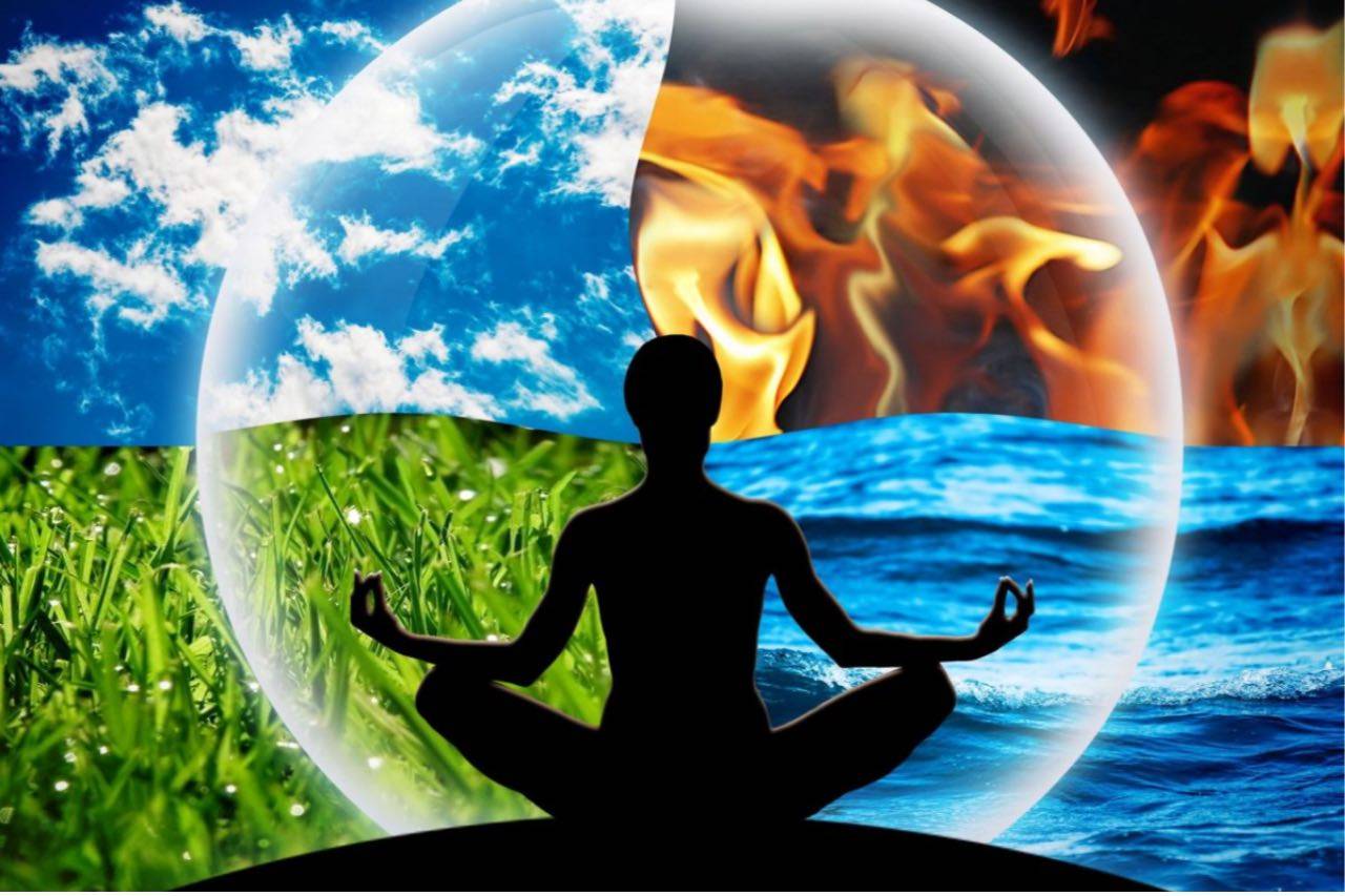 В основе творения лежат пять агрегатных состояний материи, так называемы пять великих элементов (Панча-Маха-Бхута). Эти пять элементов соединяются между собой и формируют три доши (три недостатка), которые лежат в основе конституции тела.
