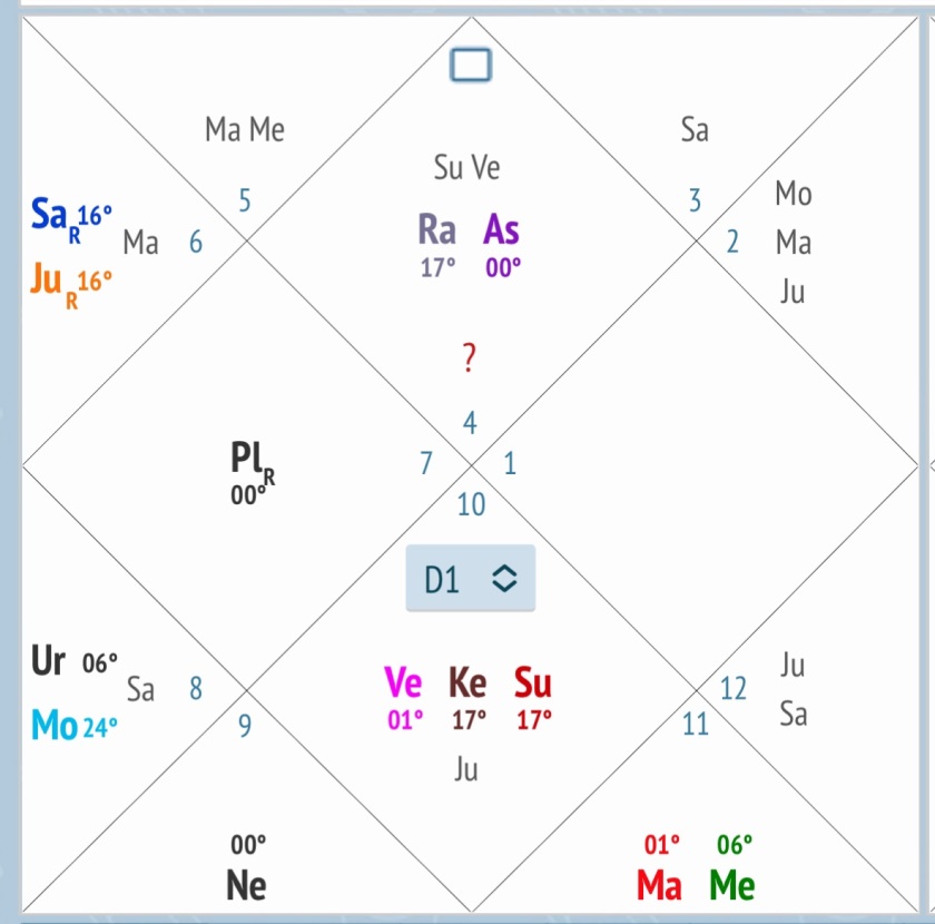Солнце, показатель иммунной системы и физического здоровья, поражено и располагается во враждебном для него знаке в соединении с Кету.