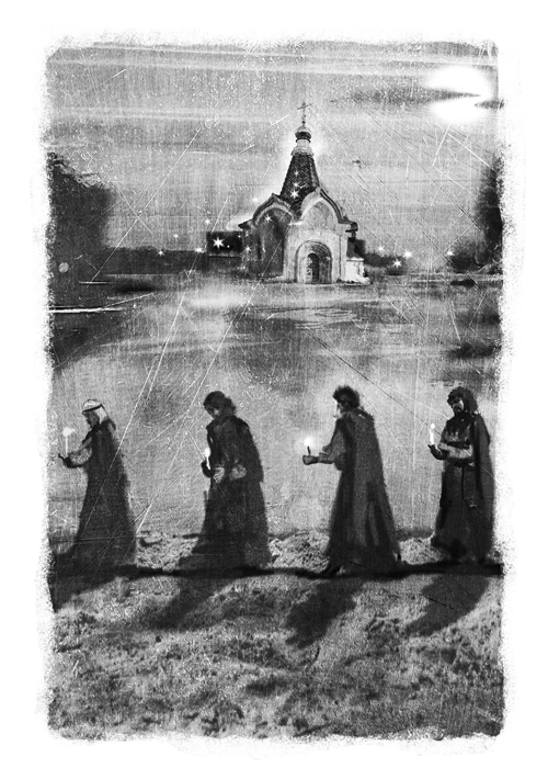 * * *Настал очередной волшебный вечер.Мне, как всегда приятно видеть вас,А вам, похоже, очень интересноУзнать о чём польётся мой рассказ.Ну что ж, садитесь рядом у камина,Где будет всем приятно и тепло,Где каждого коснётся непременноЛуч лунный, что пробился чрез окно.Итак, начнём. Я утверждать не стануЧто мне открылось: сказка или быль…Я только донесу рассказ печальныйО граде, что невидим многим был.История о нём передаётсяУже давно, и всё из уст в уста…Сказателей о граде дивном многоБлуждало, привлекая в те места.Да и сейчас их числится не меньше.Не знаю почему, но мне теперьВсё видится иначе, чем вещали.Как будто б приоткрылась в небе дверь,Дозволив в этот вечер окунутьсяВ далёкие лихие времена.Случится всё не в море, не в пустыне,То будет сердцу близкая страна,Что числилась в миру когда-то Русью.Россией она станет лишь потом.А мы сегодня с вами поблуждаемНе в этом государстве, а в другом,Где жил народ в быту намного проще,Зато он очень многих покорялОгромной верой, силой духа мощной,И тем, что землю свято охранял.Им было что беречь. Русь, как невестаМанила своей дивной красотой,Приданным, в виде рек глубоководных,Лесов, полей и снежною зимой.И жил в те годы хан, что спал и видел,Как дивные места те захватить,Народ же, что пред ним не преклонился,Стереть с земли, иль заживо сгноить.Скажу вам, времена были лихие.Хан войском своим всех превосходилИ был жесток. Где-либо атакуя,Он даже малых деток не щадил.Горели города, горели люди,Закрытые в церквях или домах.И весть о приближенье басурмановВсегда в сердца людей вселяла страх.Что толку от древесных укреплений,Когда преграду пожирал огонь?А воина, что бился чаще пешим,Копьё сражало или крепкий конь.Князья Руси, что ею управляли,В то время были очень недружны,Дружинами, для битвы не сливалисьИ были потому покорены.На жутком и ужасном пепелище,Народом поднимались города.И добавлялись новые, в надежде,Что хан вновь не заявится туда.Ища края, что были недоступны,Князья иной раз делали объезд,Минуя реки бурные, болота,Равнины и глухой, дремучий лес.Причём леса для них были приглядней,Хотя там были трудности с водой,Что можно пить, где рыба не ловилась,Что числилась доступною едой.Зато водилась дичь, встречались частоПоляны сладких ягод и грибы,Орехи и кустов разнообразье,Дарующих вкуснейшие плоды…А главное, залётным басурманамПробраться было очень нелегкоНа коннице своей чрез чащу леса,Где высились деревья высоко.Удобней нападать было на поле,Когда для взора город был открыт.Тогда орда, похожая на тучу,Летела с гиком и под стук копыт.Один из тех князей, как и другие,Был в поисках земли, где возвестиВозможно город, хану недоступный,Где люд мог мир и счастье обрести.Он прежде миновал четыре речки,Прошёл немало тропок средь лесов,Пока не встретил озеро большое,Что было скрыто средь пяти холмов.То место было будто бы волшебным.Манила чистотой своей вода,У берега её плескалась рыба,Несложною добычей рыбака.Вокруг был лес, стояла деревушкаИз нескольких бревенчатых домов,Паслись спокойно дойные коровы,Ласкала слух песнь птичьих голосов.И в этом крае ощущалась лёгкость.Входила в расслабление душа.Она в успокоении парила,Невзгоды и ненастья приглуша.Навстречу князю выбежали люди.Один из них, кто уважаем был,Склонился пред великим и спокойно,Дав знак своим, тотчас заговорил:«Ты, князь Великий, нам