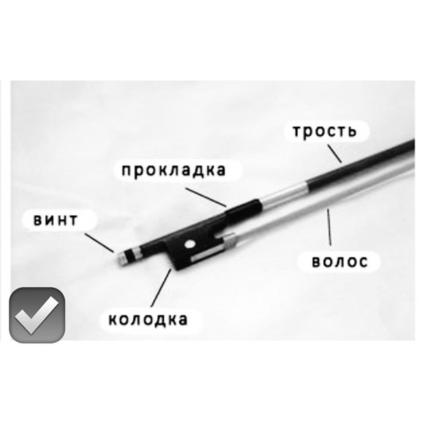 Для начала представлю фотографии скрипки и смычка с названиями частей.