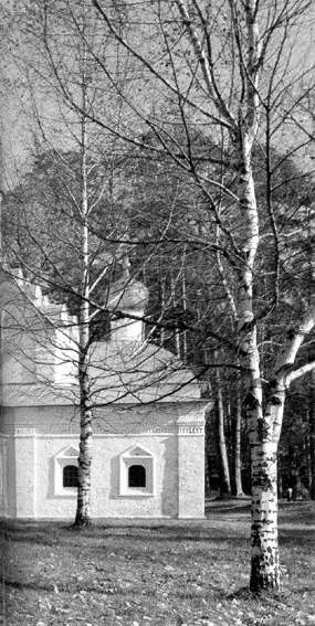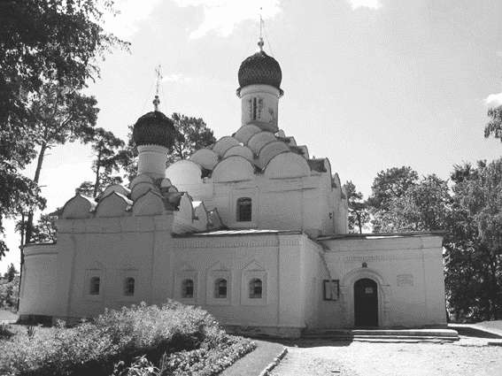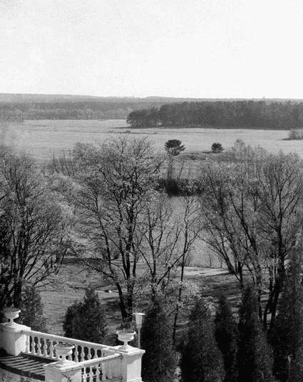 Нынешнее Архангельское завершается там, где некогда начиналось – на обрывистом берегу Москвы-реки. Отсюда взгляду открываются заречные дали, только отсюда создается полное впечатление об ансамбле и только здесь можно осознать его колоссальный размер. Некогда с этого места княжескую усадьбу писали крепостные художники, пытаясь охватить взглядом все сразу: дворец, парк и маленькую старую церковь – единственную постройку, уцелевшую с тех времен, когда будущий дворцовый комплекс был всего лишь хозяйственной вотчиной.