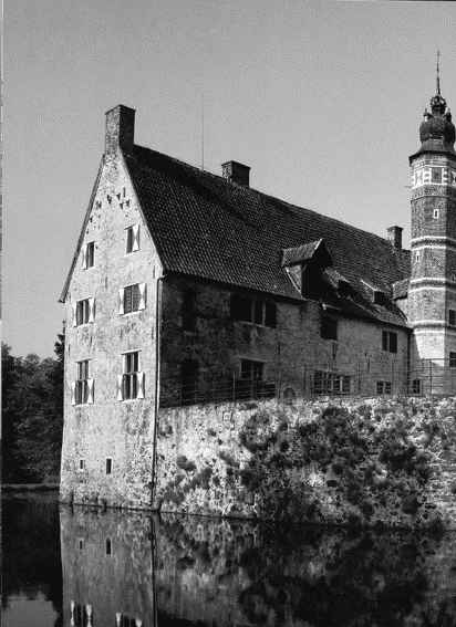 Сам владелец, не важно, был ли он королем, графом, епископом или главой монашеской общины, поселялся на некотором удалении от крепостной стены. На рубеже тысячелетий господский двор с укрепленным домом и церковью всегда стоял на равнине, тогда как лачугам бедного люда отводился склон кольцевого вала. Жилище хозяина – мощное, одноэтажное, выстроенное из цельного дерева или камня здание – по периметру окружали палисад и заполненный водой ров. Вход в единственный зал находился на уровне земли, дверь открывалась прямо с улицы, а слабое освещение обеспечивали окна, пробитые в стенах толщиной 1–1,5 м. Если старому дому удавалось выстоять хотя бы сотню лет, его переделывали в новом вкусе, разделяли надвое или расширяли, пристраивая спальню с теплыми полами и рыцарский зал, иначе называемый каминным. Еще одно жилое помещение могло появиться после надстройки второго этажа, куда хозяева поднимались по деревянной лестнице, прикрепленной к внешней стене. Нижний вход в этом случае замуровывался, и графские палаты превращались в цитадель. На случай осады в маленьком промежуточном дворе находилась цистерна с водой. Ранние германские замки строились в основном из дерева, многие были покинуты уже вторым поколением основателей и быстро пришли в упадок, не сохранив ничего от надземной части. Те, что служили дольше, подверглись многократным расширениям и переделкам, зачастую с полным сносом прежних строений, поэтому о первоначальном их виде можно только догадываться. Кроме того, их было не так много, как в позднем Средневековье, когда в замках жили особы дворянского звания. Появление жилых домов из камня относится к середине X века.