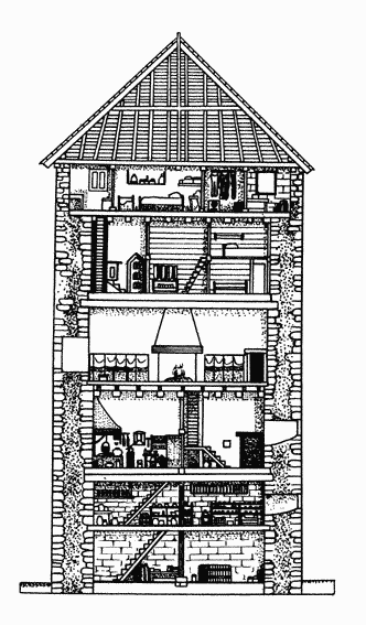 Разрез жилой башни, типичной для раннесредневековой Германии