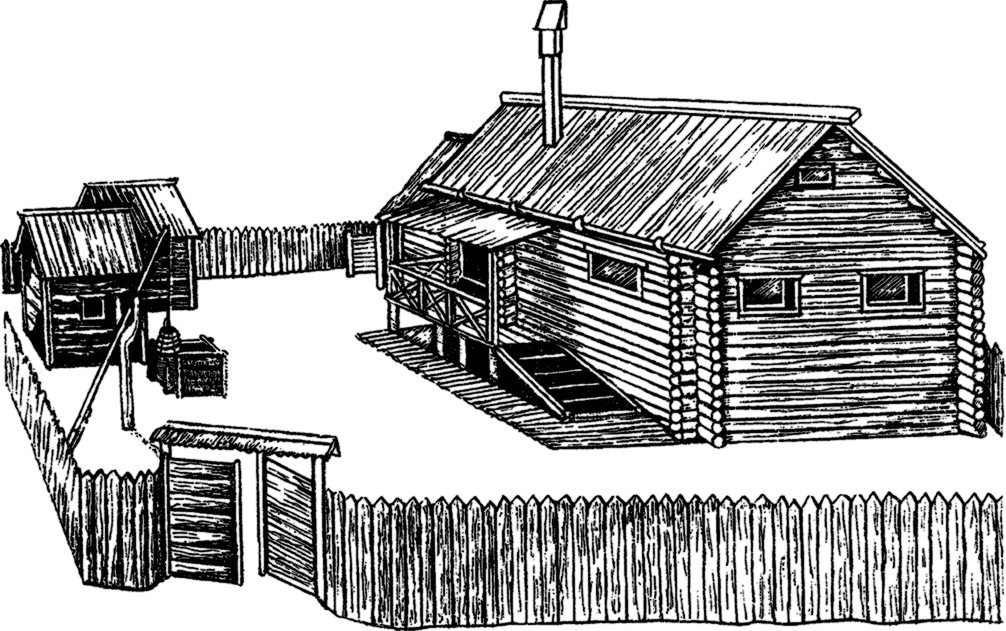 Боярский двор по виду напоминал хорошо укрепленный замок. Окруженные крепким частоколом строения предназначались для хозяина и его многочисленной челяди. Подобный двор, кроме жилья, включал в себя сад и набор построек, позволявших существовать, не выходя за пределы усадьбы. В ранние времена хозяйская «хоромина» почти не отличалась от землянки зажиточного посадника. Обязательными элементами каждой усадьбы были такие сооружения, как баня, навесы для летнего содержания скота, погреб-ледник и всевозможной формы ямы для хранения продуктов.