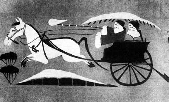 Правитель с женой на колеснице. Живопись на туалетной коробке, эпоха Враждующих царств