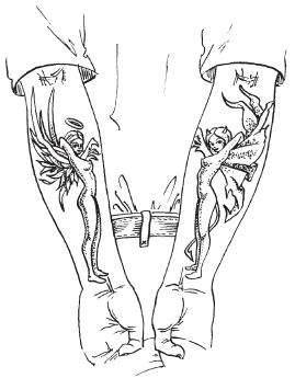 Лицо – самая заметная часть человеческого тела. Поэтому именно его украшают в первую очередь, хотя нет такого места на теле человека, над которым не потрудился бы тату-художник. В древности его услуги требовались часто. Едва ли не все стороны жизни первобытных людей были связаны с тату, от рождения до самой смерти. Татуировались все: дикие племена Европы, культурные жители Азии, американские индейцы и сентиментальные обитатели островов Тихого океана. В Индонезии и Полинезии практика тату непрерывно передается из поколения в поколение и по сей день. У разных народов татуировка служила защитным талисманом – детей оберегала от родительского гнева, взрослых защищала от хищников на охоте, а стариков – от болезней. Именно магические свойства тату привлекали британских моряков XVIII века, изображавших на своих спинах распятие в надежде, что Господь оградит их от телесных наказаний. До того, в пору Крестовых походов, рыцари, по примеру плененных мусульман, носивших на себе цитаты из Корана, накалывали высказывания из Библии. Средневековая знать делала нательные рисунки в виде символов власти и фамильных гербов, а простолюдины обходились слащавыми любовными сценками.