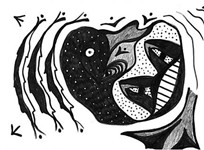 К вечеру муж акулы-молота заблудился в морском пространстве, когда на него смотрела Луна. А к утру, акула-молот с первыми лучами восходящего солнца стала носом молотить новый путь к счастью.
