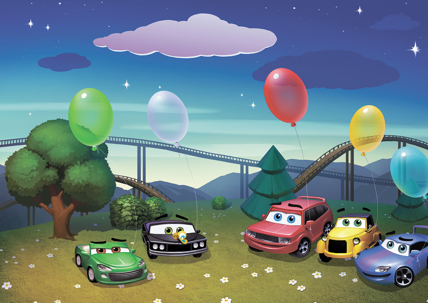 Пятеро друзей-машинок прикатили на площадь в великолепном настроении. Красный Фарик дожевывал сладкую бензовату, зелёный Радер и синий Крылан спорили, кто победит в праздничных гонках, а жёлтый Лонги с чёрным Трейном обсуждали выставку новых изобретений.