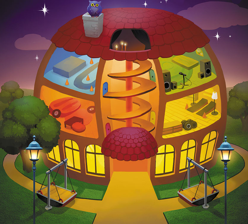 На втором этаже живут Фарик и Лонги. У Фарика в комнате всегда беспорядок, потому что он так быстро придумывает новые дела, что закончить старые просто не успевает.