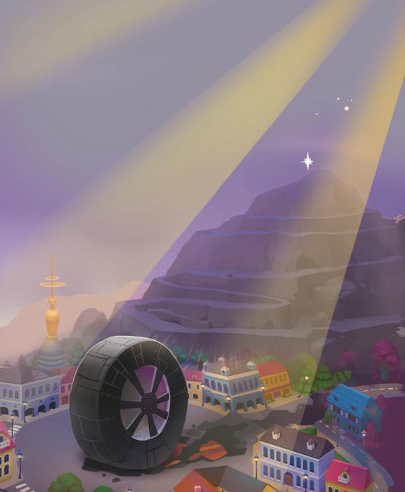 К его дому вела однополосная алая трасса, которая потом серпантином поднималась по склону. Там, прямо на вершине самой высокой горы, у Нивика была оборудована площадка для испытаний. Нивик оградил её высоким забором, чтобы никто не мешал, и конструировал там всякие интересные штуки. Кстати, пропеллер для полётов машинок был его последним изобретением и его гордостью.