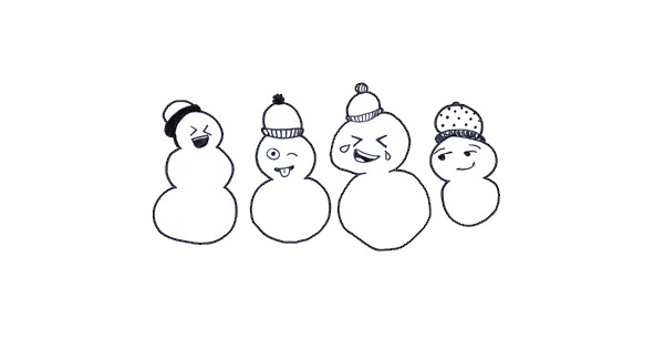 Нарисуйте много снеговиков. Сделайте шаблон из картона. Для этого нужно обвести три кружочка, чтобы получился снеговик. Можно использовать стаканы, крышечки, свечки или то, что есть круглого под рукой. Вырезать шаблон из картона и быстро обводить его на каждом листе в альбоме. Каждому снеговичку приклейте смешную шапку. Нарисутей веселые смайлы с разными эмоциями на снеговиках. Получится коллекция смайлов-снеговиков.