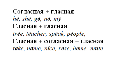 4. Прочитайте слова с буквой e в закрытом и открытом слоге: