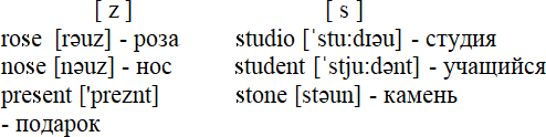 2. Буква s произносится как звонкая [z] между гласными, и как глухая [s] – перед согласными.