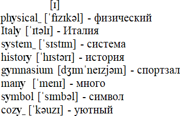 2. Прочитайте слова с переводом на русский язык. Обратите внимание на чтение букв i, y.