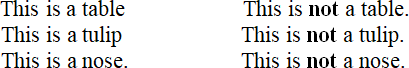 No, green, tube, big, ill, thin, three, five, six, nine, these, those, he, me, is, take, sit, it, stone, lip, that, box, put.