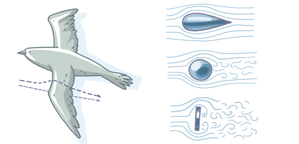 Крылья самолета и птицы устроены похоже. Воздух над верхней поверхностью крыла движется быстрее, чем под нижней поверхностью. Из-за этого давление воздуха сверху меньше, чем снизу. Так крыло позволяет не падать в полёте.