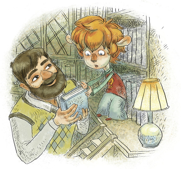 – Здравствуй, Чевостик. Во-вторых, надо вернуть книги на полку. Я буду их подавать, а ты расставляй по местам.