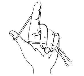 Рис. 2. Положение нити на левой руке при наборе петель