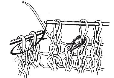 При вывязывании скосов рукавов, пройм и т. п. требуется равномерное убавление по 1-й петле с каждого края, которое выполняется следующим образом.