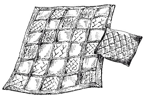 Для чехла на подушку наберите на спицы 45 петель и вяжите платочной вязкой полотно длиной 60 см, после чего все петли закройте в одном ряду. Сложите полотно пополам и выполните швы с двух сторон, вставьте внутрь подушку подходящего размера и выполните третий шов (рис. 12).