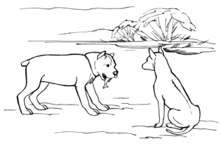 Джави нигде не было. Хозяйка Джави разволновалась и стала звать щенка. Никто не откликался. Мы принялись за поиски, прочесывая каждый кустик и не переставая звать серенькую малышку. Внезапно Деточка остановился и, поведя носом, бросился к берегу. Мы побежали за ним.