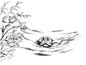 С горем пополам мы все же достигли укромного местечка. Оглядываясь, нет ли поблизости Бородача, мы натянули купальники и пошли к воде. Деточка отправился за нами, но на полпути остановился, раздумывая, идти ли ему дальше или все-таки побыть на берегу.