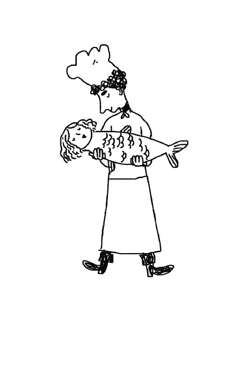 Повар протянул девушке-рыбе баурсак. Пытаясь откусить от круглого румяного бока, она неловко повернулась, и лакомство оказалось в воде.