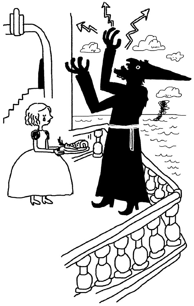 На третий день Злой Колдун сидел на балконе и с тоской смотрел на море. Тайма принесла тарелочку с морковкой и треской.