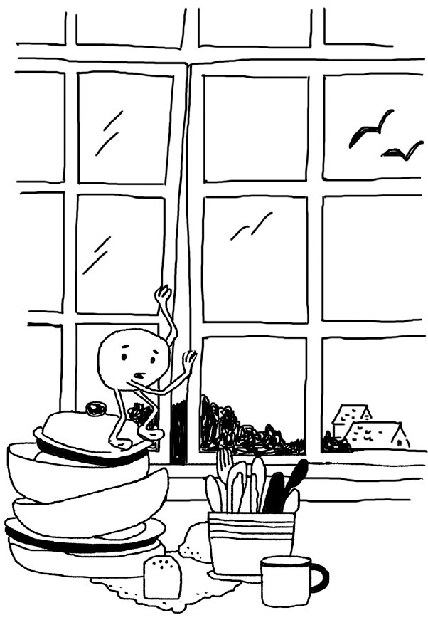 Все окна тоже были закрыты. Только единственная створка на кухне, которой помешала захлопнуться солонка, оставалась приоткрытой. Чуть-чуть. Но как ни пытался Рыбий Зонт, у него не получилось сделать эту щёлочку ни на миллиметр шире.