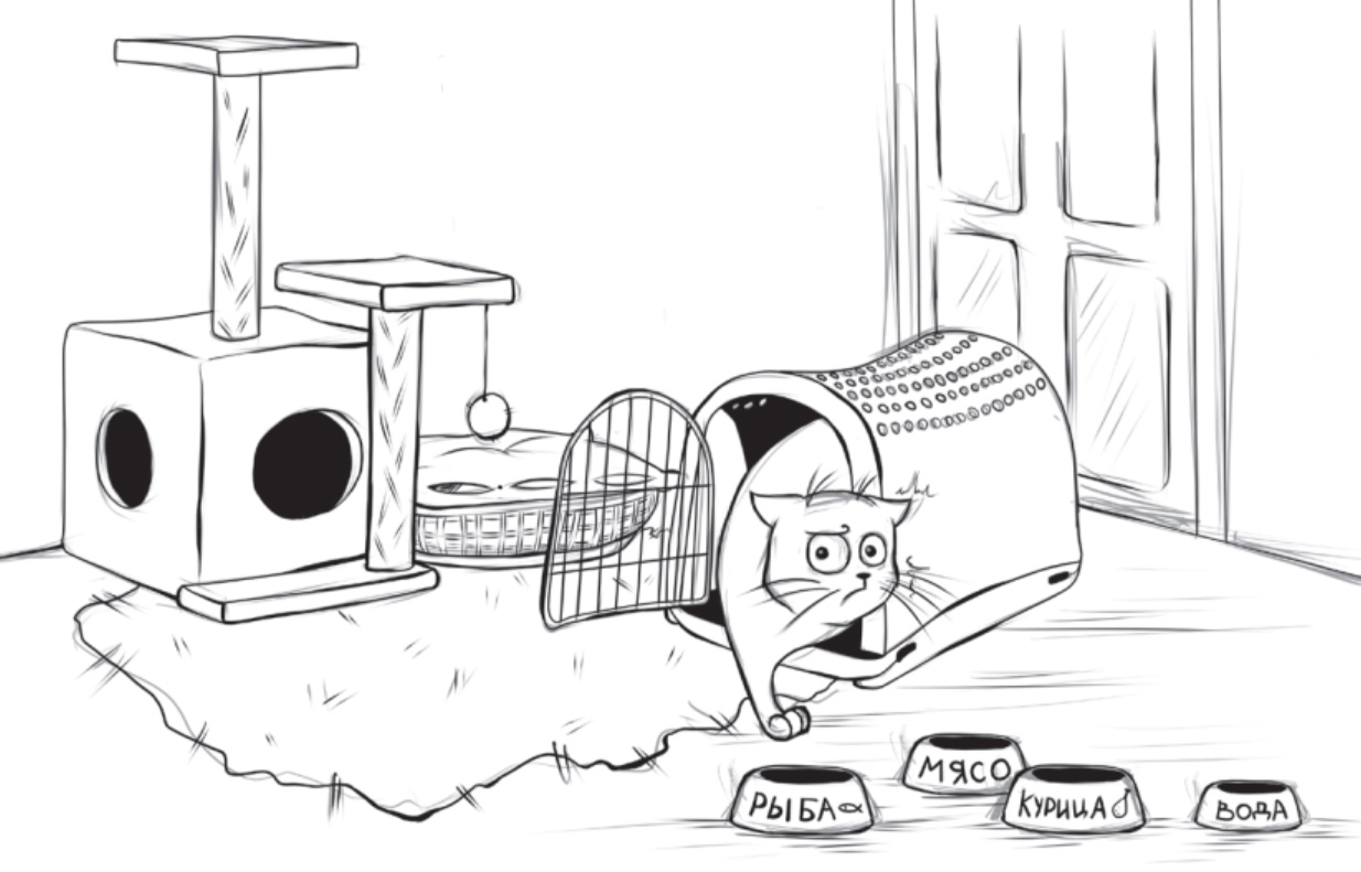 Когда вы занесёте переноску с котёнком в дом, первым делом поставьте её в изолированное место. Не надо насильно вытаскивать животное, показывать ему ваши хоромы и рассказывать, где туалет, где кухня, а где можно посмотреть новости на «Первом канале». Ваша задача – обеспечить питомцу тишину и спокойствие, чтобы он как можно быстрее адаптировался к новым условиям жизни. Для этого выделите ему небольшую комнату или тихое местечко. Если у вас однокомнатная квартира, поставьте переноску, например, на кухню и откройте дверцу. Когда котёнок почувствует себя в безопасности, он сам выйдет, чтобы исследовать территорию. Одним малышам для этого понадобится совсем немного времени, они практически сразу покинут свою переноску и ринутся изучать новое жильё, обнюхивая всё вокруг с гордо поднятым хвостом. Другие могут оказаться более застенчивыми, их адаптация займёт больше времени. Такие товарищи покидают переноску не сразу, они предпочитают посидеть внутри и убедиться, что им ничего не угрожает.