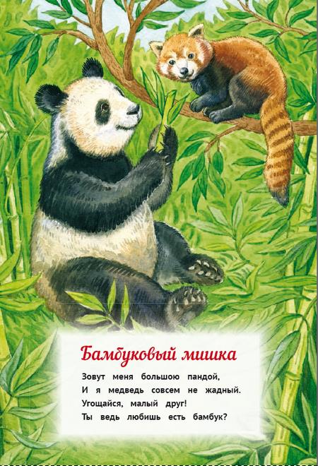 Зовут меня большою пандой,И я медведь совсем не жадный.Угощайся, малый друг!Ты ведь любишь есть бамбук?