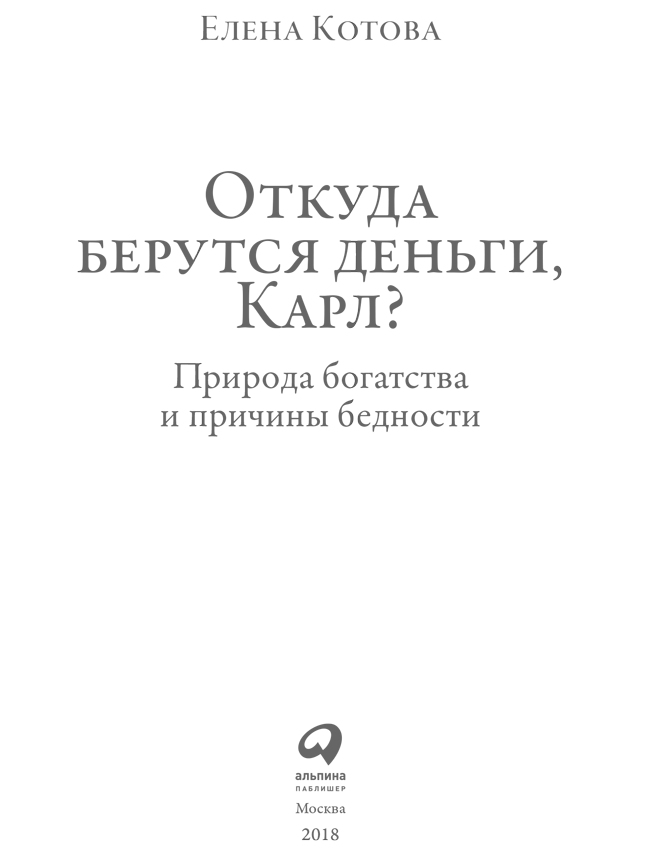Откуда берутся деньги, Карл? Природа богатства и причины бедности / Елена Котова. – М.: Альпина Паблишер, 2018.