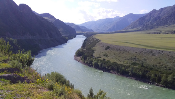 А наш путь лежит дальше – к сакральному для каждого алтайца месту слияния Чуи и Катуни. Здесь полноводная красавица-Катунь принимает в свои объятия свою младшую сестру -реку Чуя.
