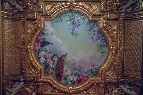 • украшение фасада барельефами на тему античной мифологии и колоннами, которые также использованы в интерьере;